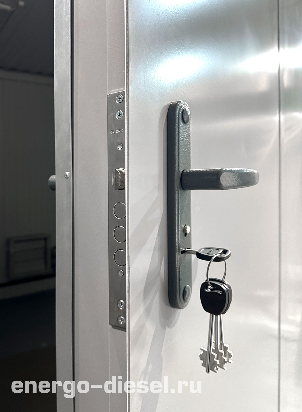 количество дверей: 1 шт. внешняя обшивка: сталь 1,2 мм стальная, герметичная, с замком, утепленная, противопожарная, с доводчиком |
